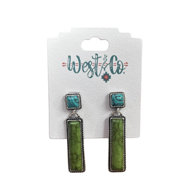 Green Bar Earring On Turquoise Square Post