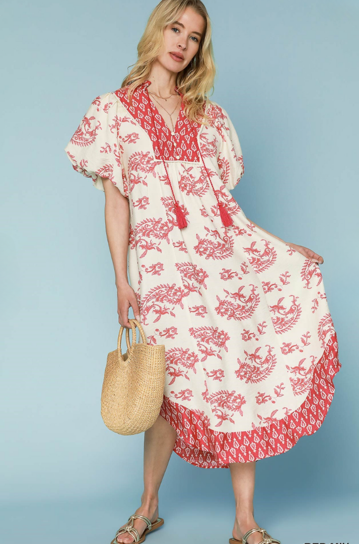 Red Boho Midi Dress