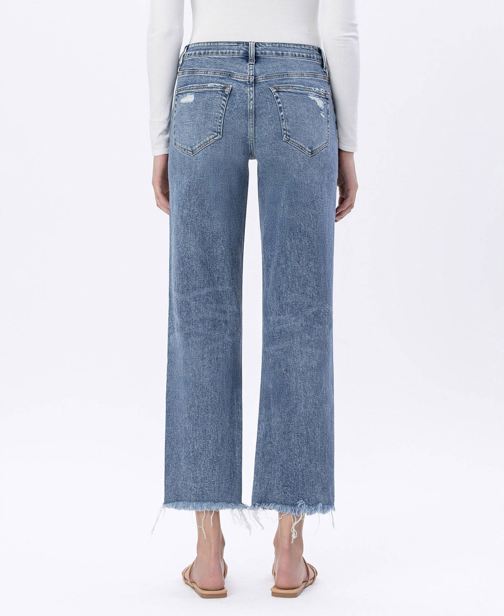 - Frayed hem and cropped length for effortless, modern styling