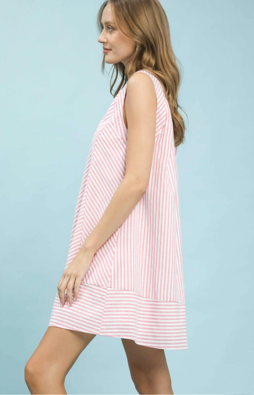 This Pink Sleeveless A-Line Stripe Mini Dress is a must-have for lovers of trendy summer fashion, casual chic outfits, and effortless everyday style.