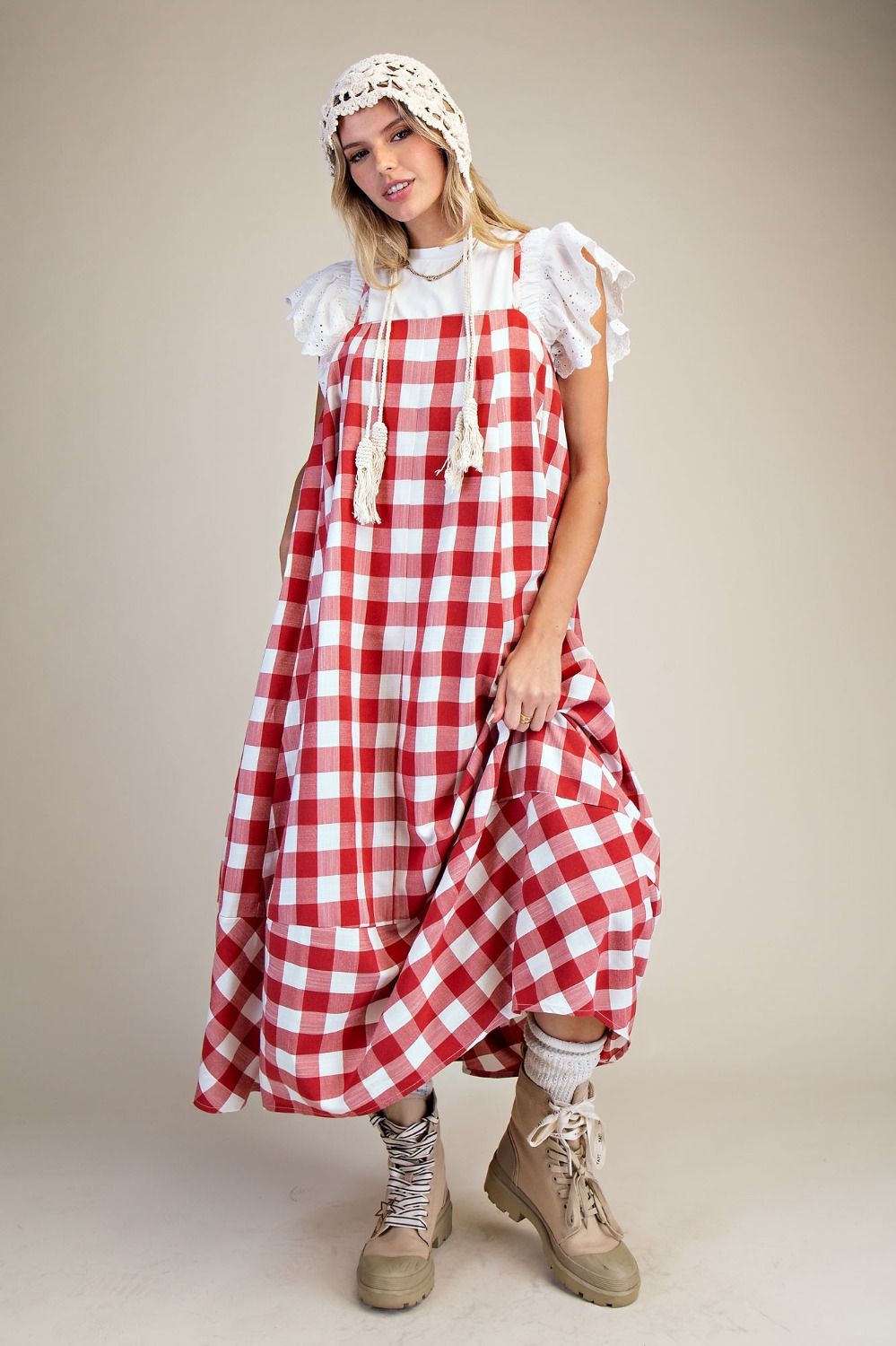 This Red Checkerboard Midi Dress is a must-have for lovers of retro-inspired fashion, statement dresses, and trendy everyday style.