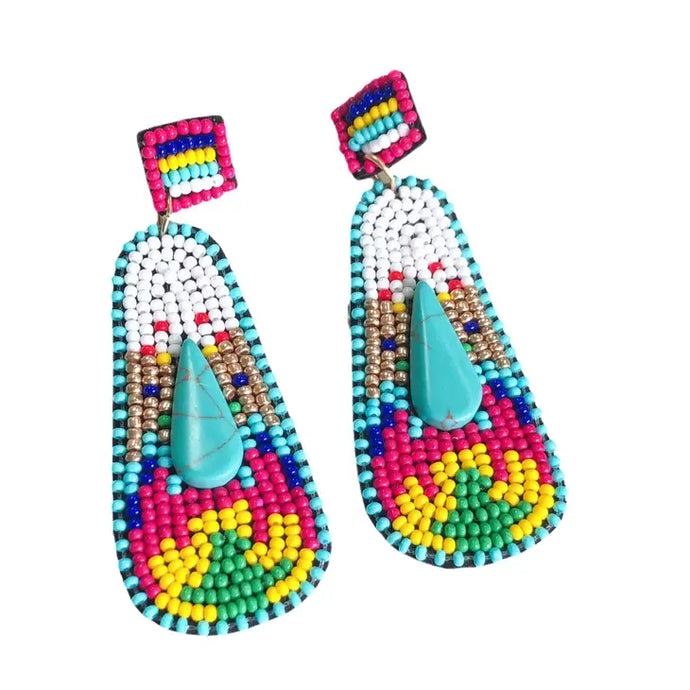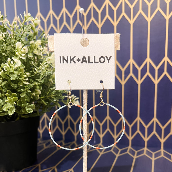 Light Blue/Coral Dot Luxe Bead Dangle Hoop