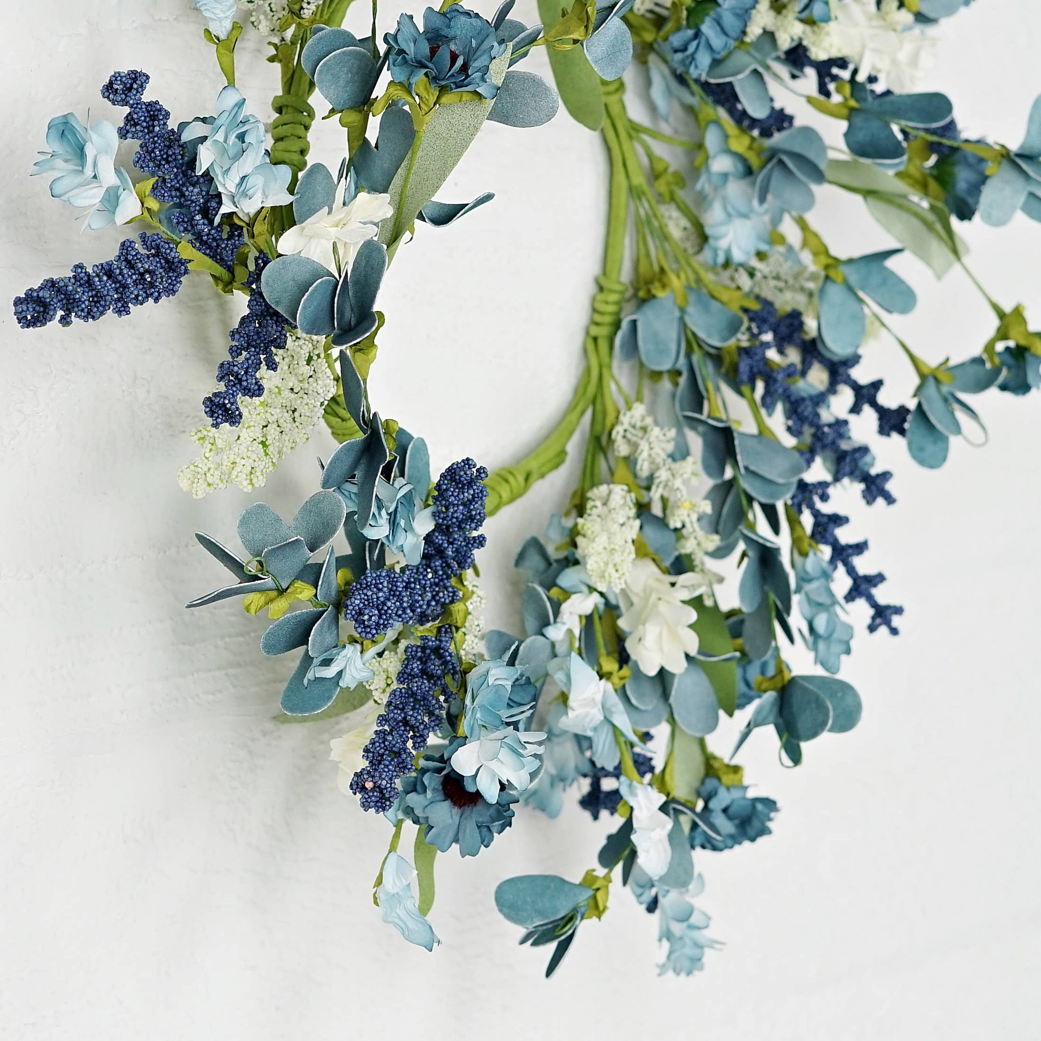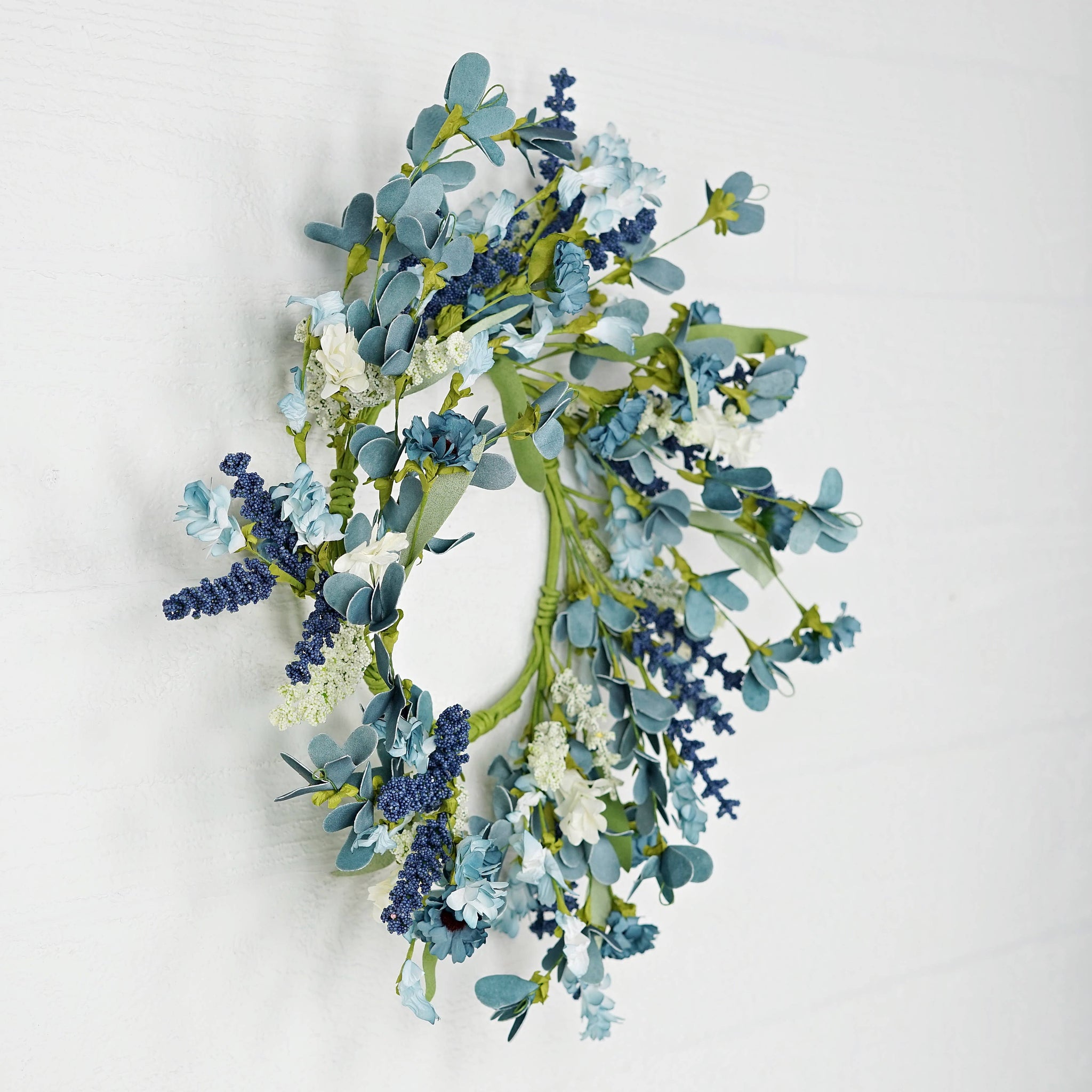 Country-style mix of blue and white artificial flowers