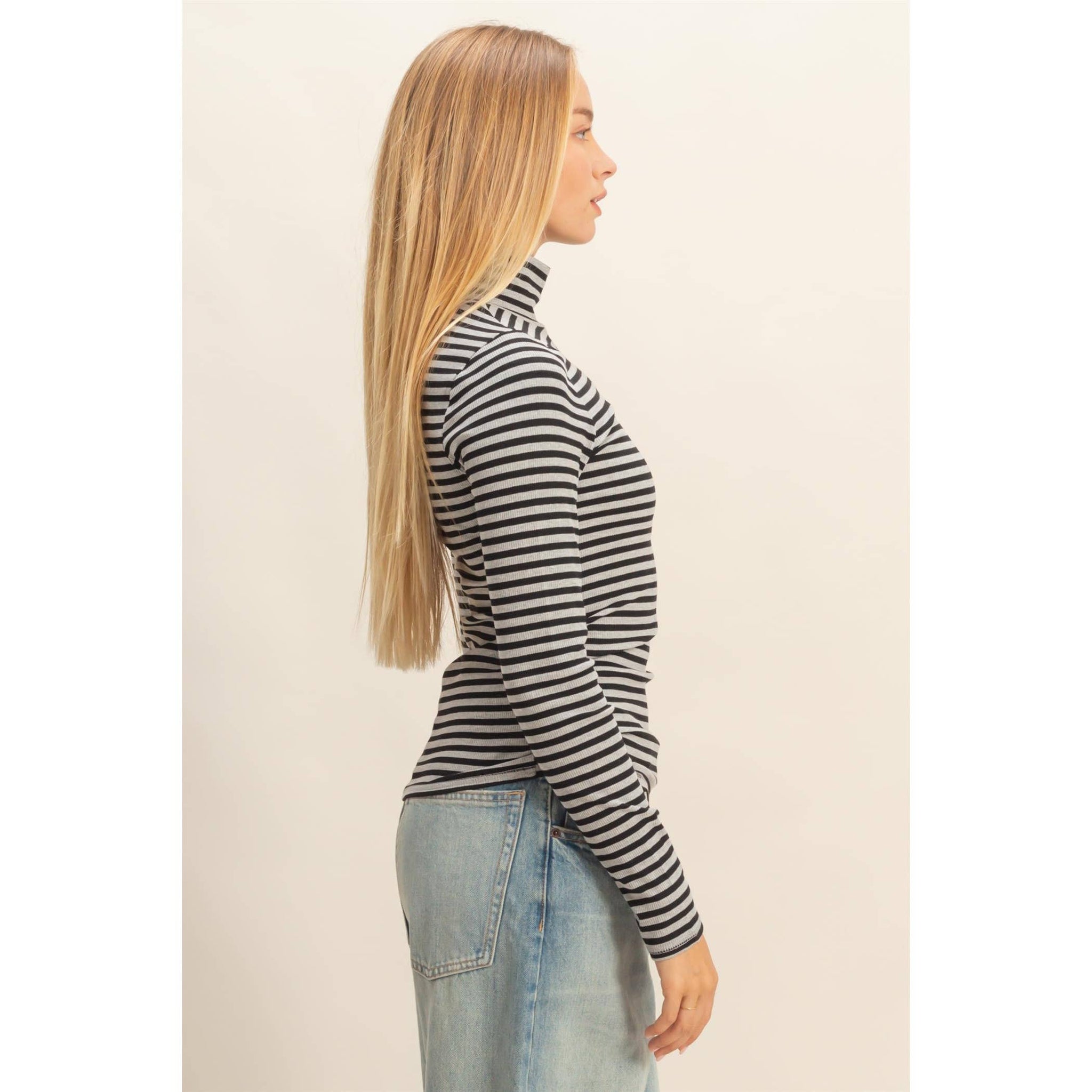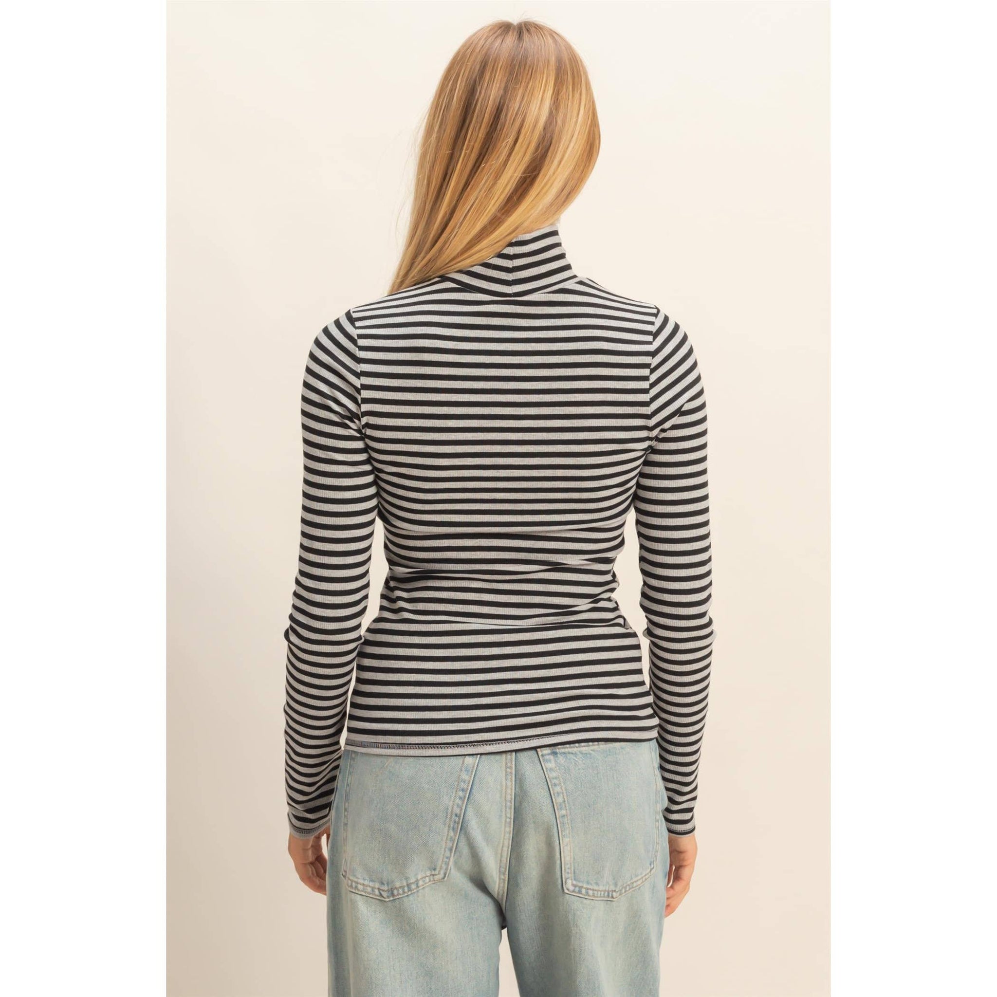 Whether you’re dressing it up for work or keeping it casual for coffee runs, this striped turtleneck delivers clean lines and cool-girl energy in one perfect piece.