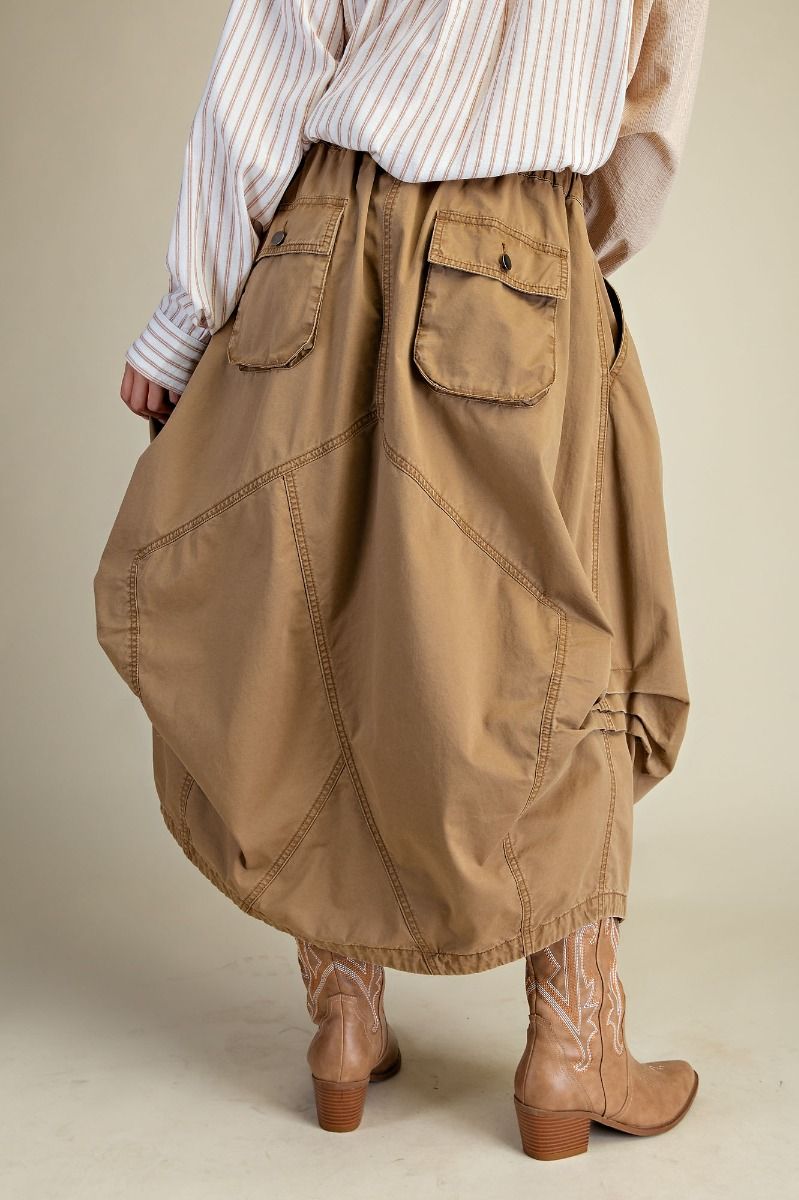 Effortlessly cool and versatile, the Washed Parachute Maxi Cargo Skirt brings utility style to everyday dressing. With its relaxed silhouette and cargo-inspired details, this skirt combines comfort, function, and trend-forward edge.